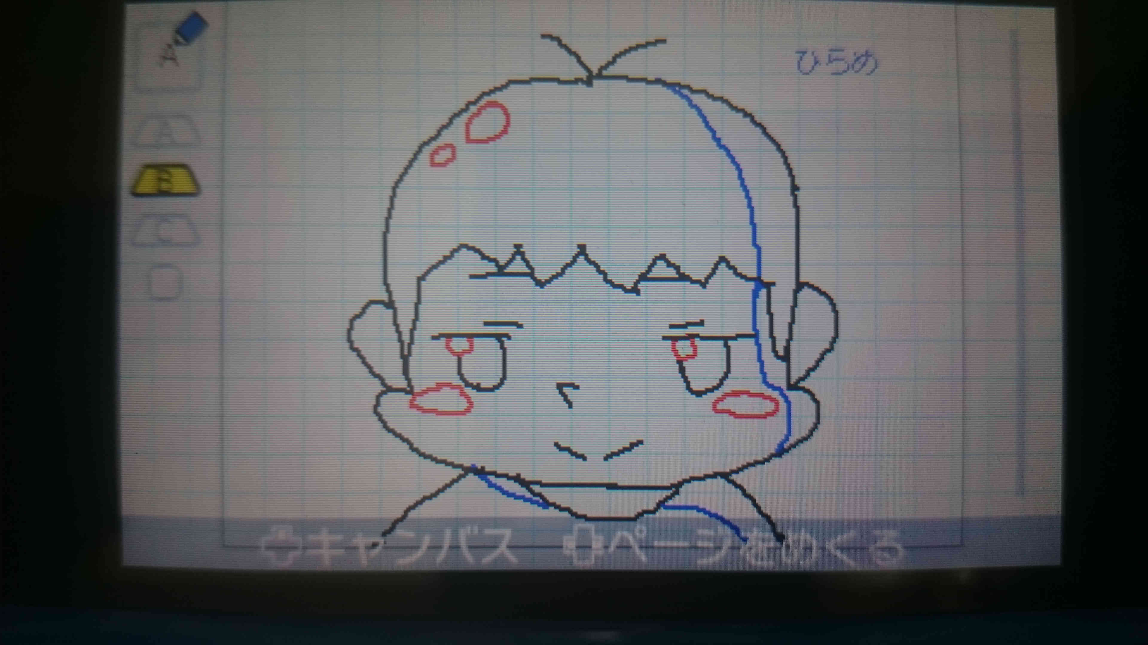 1、うごメモ3Dで好きな線画を描き、画像を3DSのSDカードに保存。