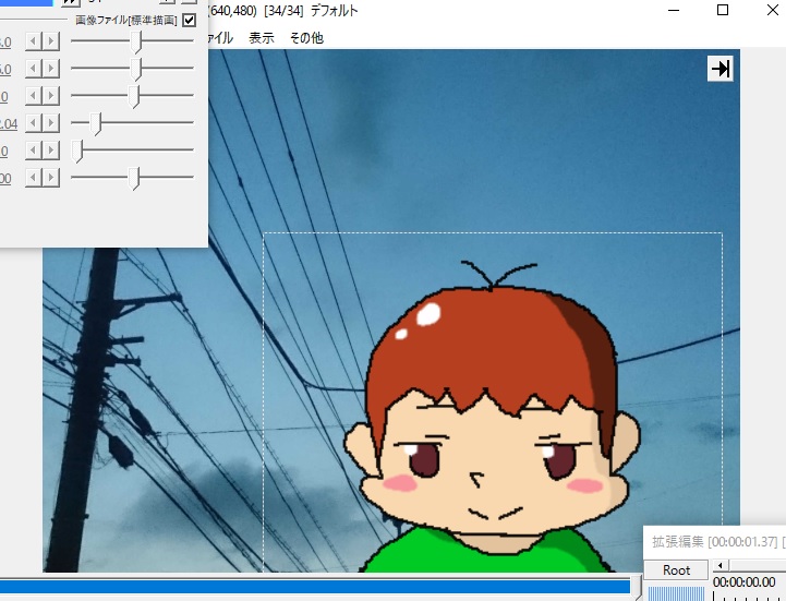 せっかく色塗りまでしたんで、動画編集ソフト「aviutl」で表示させてみます。ざんねんながら動いたりはしませんが。